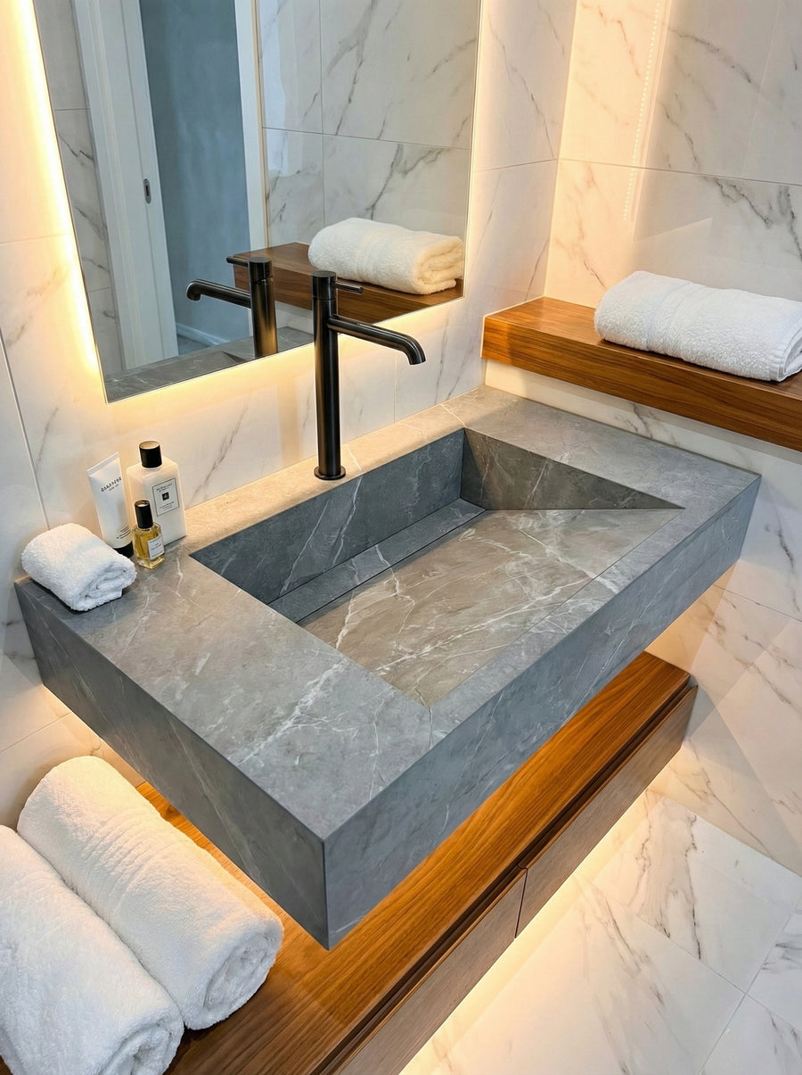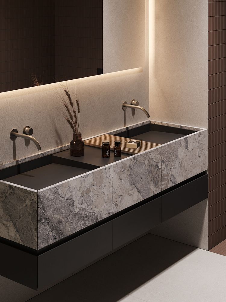 Des pièces sculptées pour devenir le point focal de la salle de bain.